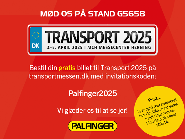 PALFINGER vil i år stå klar på Transportmessen i Herning fra torsdag d. 3. april til lørdag d. 5. april.