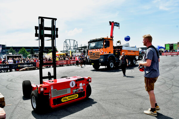 Auf die Aktionsfläche fuhr auch der per Funkfernsteuerung bedienbare Mitnahmestapler BM 214, der in lediglich 30 Sekunden einsatzbereit ist.