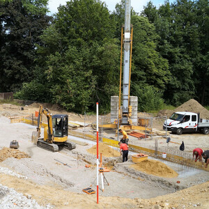 Hans-Volker Hummler, der die Gäste durch den Tag führte, durfte als Projektleiter den Höhepunkt der Grundsteinlegung vornehmen. In einer Zeitkapsel versenkte er Dokumente aus der Vergangenheit und Gegenwart des Unternehmens im Fundament der neuen Werkstatthalle. Er wünsche allen Beteiligten sowohl ein gutes Gelingen der Bauphase als auch eine erfolgreiche Zukunft am neuen Standort. Anschließend feierten die zahlreichen Besucher den wichtigen Schritt in der Firmengeschichte mit einem Empfang an der Baustelle, an der auch während der Grundsteinlegung mit Hochdruck weitergearbeitet wurde. Mit Ende 2018 will man den neuen Standort beziehen und den Umzug von Ebersbach abschließen, wo man derzeit nur Mieter ist.