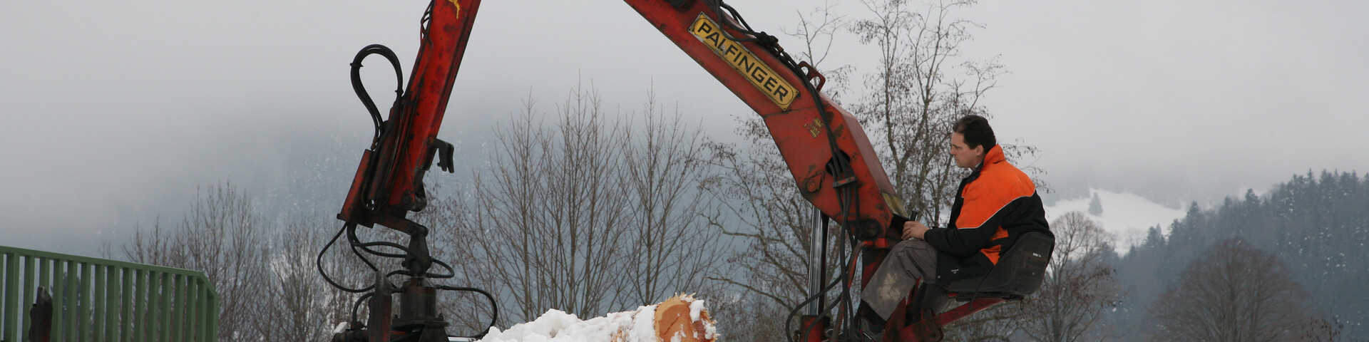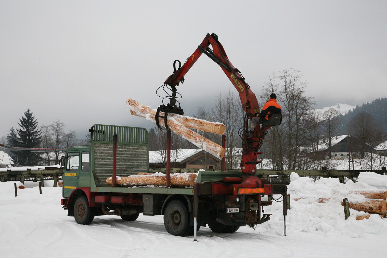 Adolf Ebner, Besitzer eines Säge- und Hobelwerks in Faistenau (Österreich) erwarb den Rundholzkran damals, um sich seine Arbeit beim Holzverladen leichter zu machen. „Zuvor machte mein Vater alles händisch“, erklärte uns der Sohn von Adolf Ebner, Bernhard, der das Sägewerk mittlerweile gemeinsam mit seiner Frau in dritter Generation führt. Wichtig war es einen Kran zu haben, der möglichst platzsparend am LKW montiert werden konnte, sodass genug Fläche für die Ladung blieb. „Mein Vater hat damals noch alles selbst gemacht. Er hat das Holz im Wald und von Bauern geholt, mit seinem PK 8100 verladen und ins Sägewerk gebracht, wo es anschließend von rund auf eckig verarbeitet wurde. Mittlerweile funktioniert das so nicht mehr. Es würde sich heutzutage nicht mehr rechnen, das Holz selbst zu transportieren. Das erledigen heute Frächter.“ Nichts desto trotz hat Bernhard Ebner seinen PK 8100 und den MAN seines Vaters nach wie vor im Einsatz, wenn auch nur noch für kleine Einsätze. „Die Zulassung wurde soeben um ein weiteres Jahr verlängert. Da sieht man, dass sich gute Pflege bezahlt macht“, so Ebner.