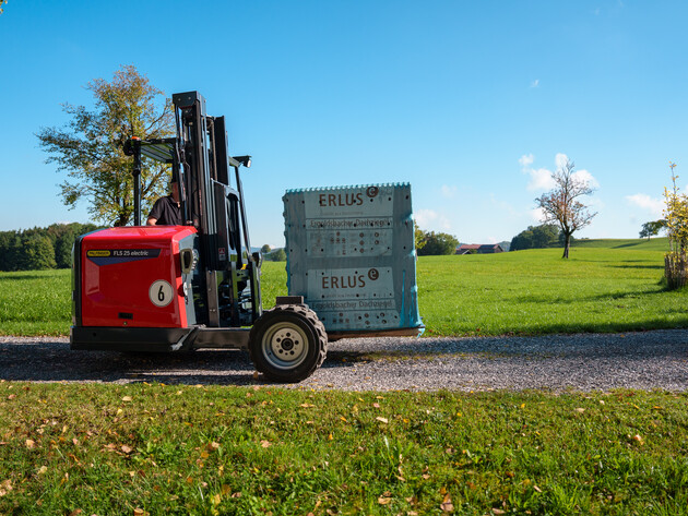 Beim Transport und der Verladung von Baumaterialien kam der FLS 25 electric zum Einsatz – ein kompakter, vollelektrischer Mitnahmestapler, der durch seine einfache Bedienung, hohe Leistungsfähigkeit und besonders geräuscharme Arbeitsweise überzeugt. Im Einsatz bei Holzbau Ebster wurden mit dem FLS electric unter anderem Langholz von der Abbundanlage bewegt, Gerüste, Ziegel und Baustoffe auf den Tieflader verladen sowie Materialien innerhalb des Werks transportiert. Der elektrische Antrieb zeigte sich dabei als besonders angenehm für Mensch und Umwelt – leise, emissionsfrei und ohne Leistungsverlust. Auch die Ladung des FLS electric gestaltete sich als schnell und unkompliziert: „Das Gerät war in kürzester Zeit einsatzbereit – einfach anstecken, laden, losfahren“, berichtet das Team vor Ort, das die Baustoffe verlädt. Diese Alltagstauglichkeit, kombiniert mit den niedrigen Betriebskosten und dem geräuscharmen Antrieb, macht den FLS 25 electric zu einem idealen Helfer für Betriebe, die Wert auf Nachhaltigkeit und Effizienz legen.