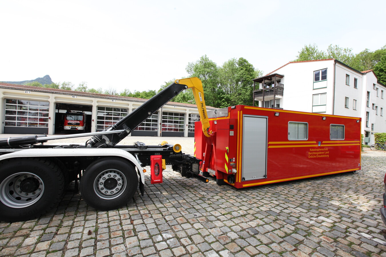 Nicht nur die Armgeometrie, sondern auch die Steuerung PAD bietet einzigartige Vorteile für die Feuerwehr. Mit nur einem Bedienhebel wird der Wechsellader gesteuert. Noch schneller ist das Abrollen oder Kippen des Behälters mit der automatischen Folgesteuerung. Mit ihr laufen auch das Ein- und Ausfahren des Unterfahrschutzes sowie die Ver- und Entriegelung der Behälter ohne zeitliche Unterbrechungen und vollautomatisch ab.