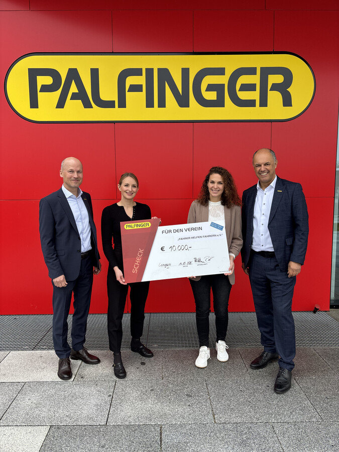 Die feierliche Übergabe des Spendenschecks fand in der PALFINGER World in Lengau, Österreich, statt. Im Rahmen eines Treffens zwischen Thomas Nußbaumer und Robert Laimer (beide Geschäftsführer der PALFINGER GmbH) sowie Martina Arens & Julia Wojtczyk (beide Vorsitzende des Vereins Fahrer helfen Fahrern e.V.) wurde die Spende offiziell übergeben. „Soziale Verantwortung ist für uns keine Floskel, sondern Teil unseres Selbstverständnisses. Unsere Branche lebt vom Engagement und der Leidenschaft der Menschen, die täglich auf Achse sind. Es ist uns wichtig, genau diesen Menschen etwas zurückzugeben“ ergänzt Robert Laimer, Geschäftsführer der PALFINGER GmbH.Mit dieser Spende setzt PALFINGER ein Zeichen – für Menschlichkeit, Zusammenhalt und Verantwortung innerhalb der gesamten Transport- und Baubranche.