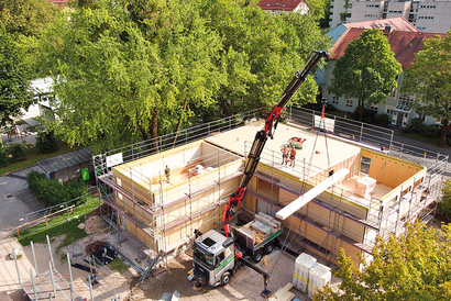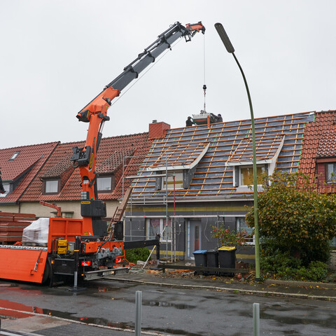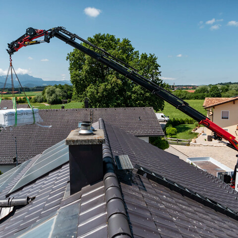PALFINGER hilft mit starken Kranlösungen zum Verheben von Holzkonstruktionen, dem Transport von Fertigteilen oder der Sanierung von Dächern. Hebe-, Installations- und Entladearbeiten in großer Höhe sind dabei dank der Seilwindenlösungen leicht durchführbar. Spezialsysteme, die für die Personensicherung laut Arbeitssicherheit erforderlich sind, z.B. der Personensicherungsmodus / FPM unterstützt zusätzlich bei Arbeiten auf dem Dach.