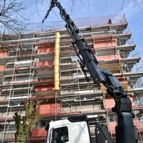 Als Gerüstbauer kommt es auf große Reichweiten und leichte Bedienung bei einem Kran an. Für die Montage von Gerüsten und Arbeitsplattformen benötigt man eine feinfühlige und intuitive Steuerung des Montagekranes. Zusätzlich unterstützen smarte Assistenzsysteme und abgestimmtes Equipment den Kranfahrer bei seiner täglichen Arbeit. Mit einem wendigen Mitnahmestapler kann Material schnell an den Einsatzort verbracht werden.