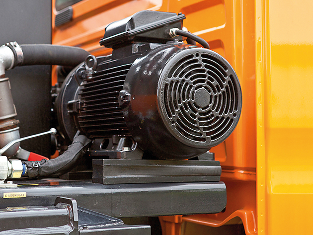 Mit Hybridantrieb für Ladekrane bietet PALFINGER ein effizientes und umweltfreundliches Gesamtkonzept. Holzbaufirmen und Dachdecker können so in lärm- und abgasempfindlichen Bereichen auf elektrohydraulischen Antrieb umschalten. Das E-Aggregat ist exakt auf die Krangröße und die speziellen Kundenanforderungen abgestimmt. Die Motor-Pumpengruppen gibt es in den Leistungsklassen 7,5 kW und 15 kW
