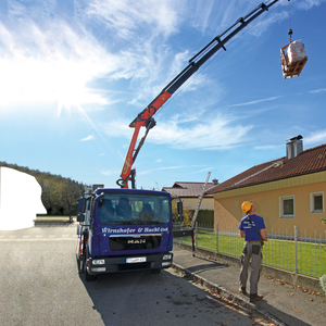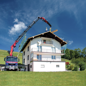 Zeit ist Geld. Beim Aufstellen von Dachstühlen, der Instandhaltung von Dächern und der Dachsanierung muss es schnell gehen. Hier wird von Ihnen als Holzbauer, Zimmerer oder Dachdecker gute Organisation und Flexibilität verlangt. Mit eigenem Fahrzeug und Ladekran bieten Sie Ihren Kunden genau diese Flexibilität. Sie sind jederzeit einsatzbereit, nehmen Ihr Material und das Werkzeug auf die Baustelle mit und können mit Ihrem Kran alle Arbeiten vor Ort schnell und sicher durchführen. PALFINGER Krane bieten neben hohen Reichweiten eine bestens abgestimmte Schwingungsdämpfung mit Soft Stopp, eine feinfühlige und intuitive Funkfernsteuerung und durchdachte Seilwindenlösungen.