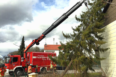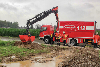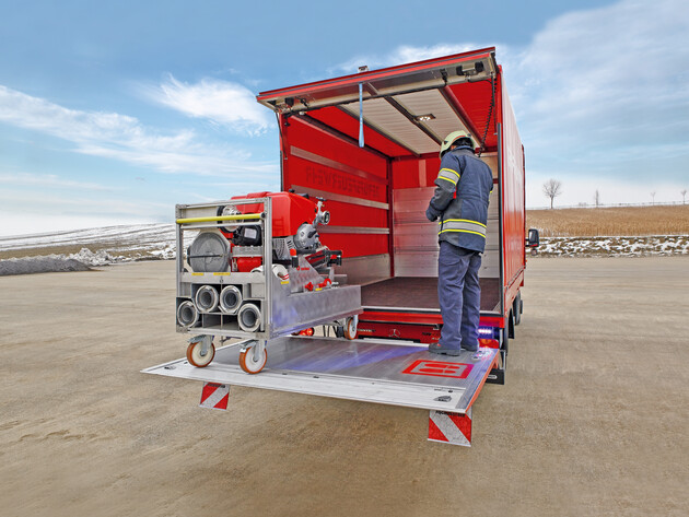 Abgestimmtes Zubehör wie z. B. Arbeitskorb, Schüttgutgreifer, Polypgreifer, Krangabel oder Schneebürste machen den Ladekran bei Bränden oder im Katastropheneinsatz ungemein flexibel. Der Kran kann Einsatzmaterial auf Paletten verladen, Schüttgut verheben, Gräben ausbaggern oder Dächer von Schnee befreien. Mit einem Arbeitskorb wird der Kran mit wenigen Handgriffen zu einer Arbeitsbühne umfunktioniert und kann bei der Mensch- und Tierrettung oder der Beseitigung von Sturmschäden beste Hilfe leisten.