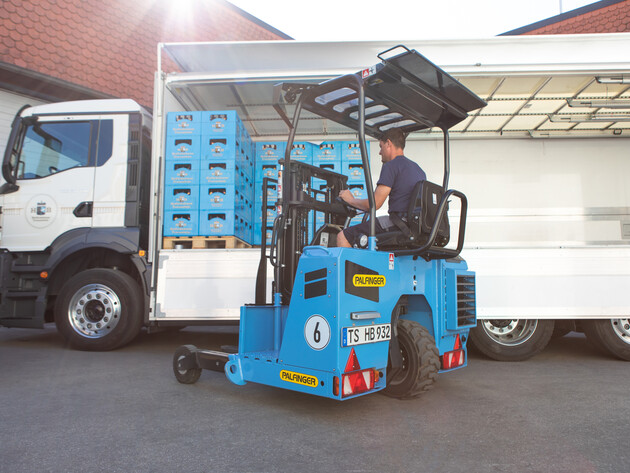 Kurze Be- und Entladezyklen, flexibeles Handling der Waren am Supermarkt oder am Verteilzentrum - mit dem PALFINGER Mitnahmestapler sind diese Aufgaben schnell und sicher zu bewältigen.