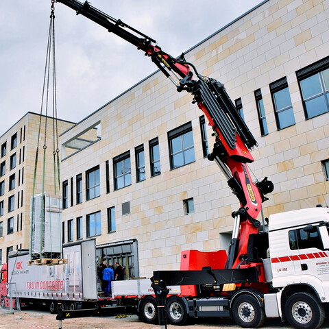 Für den Transport von Containern, Raumzellen oder Fertiggaragen wird eine flexible und starke Umschlagtechnik gefordert. PALFINGER Ladekrane sind schnell und zuverlässig in der Anwendung beim Verheben von Lasten. Niedrige Aufbauhöhe und kompakte Kranabmesseungen garantieren ein Plus an Nutzlast und voller Transportkapazität.