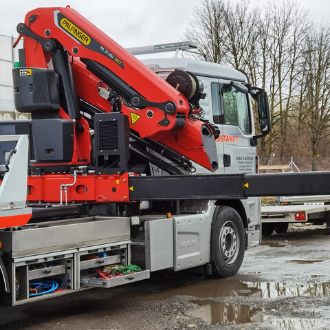 PALFINGER bietet mit dem Plateaufahrzeug in Kombination mit einem Abschleppkran die optimale Lösung für Berge- und Abschleppeinsätze. Die Plateaus HK150 und HK180 sind nutzlastoptimiert und bringen durchdachte Details für den Einsatz mit. Die T-Krane von PALFINGER bieten jedem Abschlepper Reichweite und Hubkraft für jede Situation. Zudem wird jedes Abschleppfahrzeug mit einem PALFINGER-Ladekran zum Multitalent.