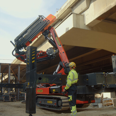 Großkrane im Einsatz! Feinfühlige Montagearbeiten, hohe Reichweiten über Störkanten und Heben schwerer Lasten im Nahbereich. Das zeichnet die PALFINGER Knickarmkrane der schweren Kranreihe aus. Smarte Assistenzsysteme helfen dabei, selbst kniffelige Hübe souverän zu meistern.