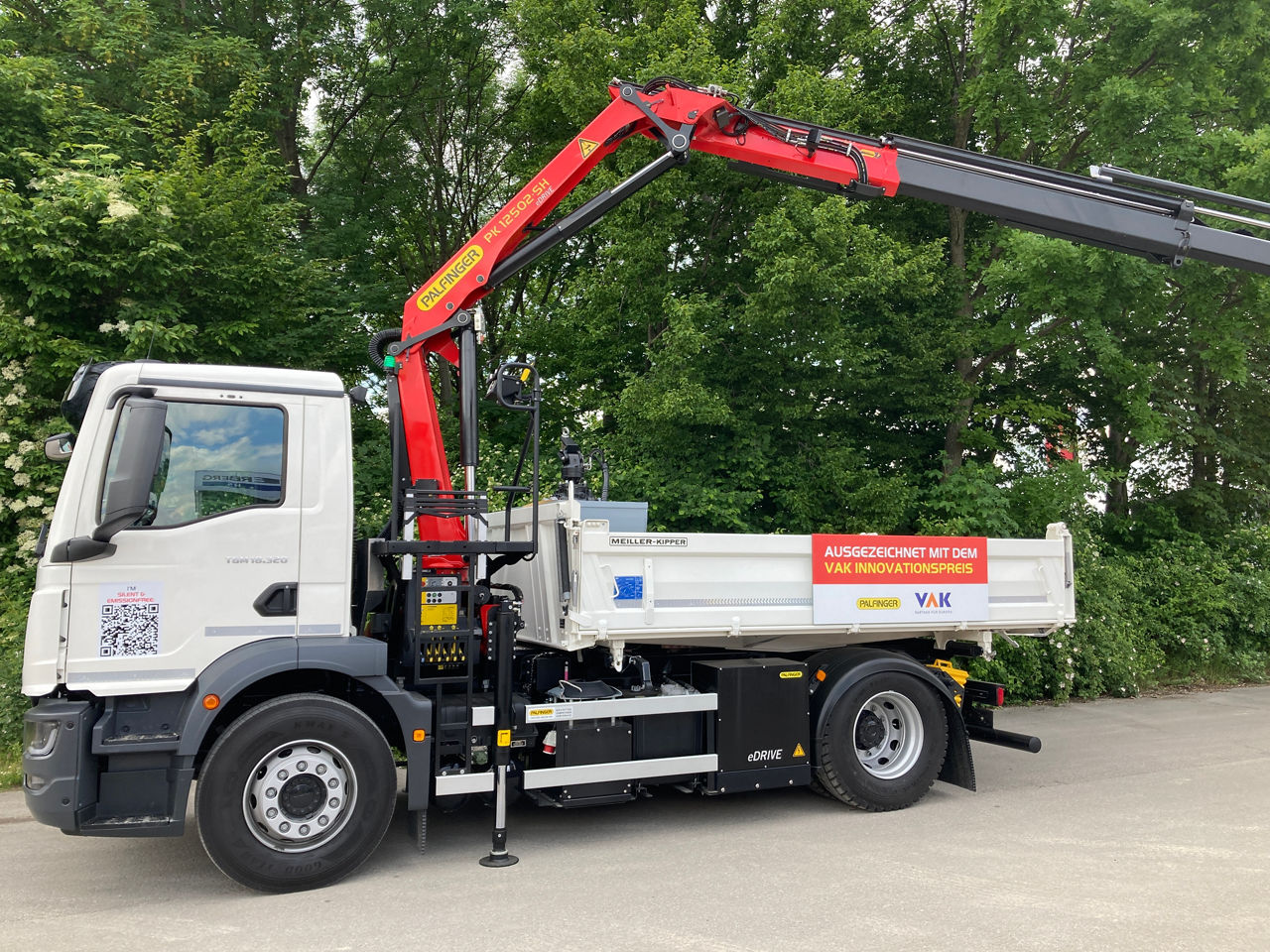 Kommunen oder Stadtwerke müssen oft in sensiblen Bereichen, in der Nacht oder in Gebäuden Arbeiten durchführen. Das sollte möglichst lärm- und abgasfrei vonstattengehen. Die Lösung sind z. B. Ladekrane mit PALFINGER eDrive. Diese werden leise und emissionsfrei von einem Li-Ionen- Akku angetrieben und sorgen über Stunden für sauberes und geräuscharmes Arbeiten. Den Akku laden Sie bequem während der Fahrt oder übers Stromnetz. Als weitere Möglichkeit können PALFINGER Geräte wie Ladekrane, Abroll- und Absetzkipper gleich direkt auf einen LKW mit Elektroantrieb montiert werden. So fahren und arbeiten Sie emissionsfrei.