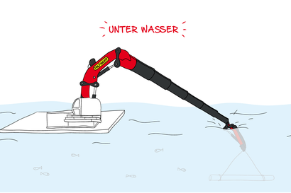 Ja, den gibt es wirklich. Weil es im Meer gefährlich ist zu arbeiten (starker Wind, hohe Wellen), baut PALFINGER Krane, die über Bildschirme und Fernsteuerungen betrieben werden.