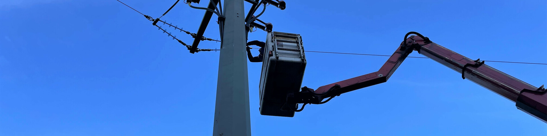 Das Aufgabenspektrum, das an diesem Morgen von der Arbeitsbühne aus geleistet wird, reicht vom Stellen über das Sichern bis hin zur Regulierung des Mastes. Nach dessen Aufrichten durch den Ladekran montiert der Arbeiter im Korb die Ankerseile. Anschließend wird der Mast über Kettenzüge transportiert und über die Bühne in Richtung der Traverse justiert. Ist das erledigt, können daran, sofern erforderlich, Armaturen wie Isolatorenketten oder Kabelaufführungen angebracht werden. Für den Folgetag ist dann die Montage 20-KV-Erdkabel an die Endverschlüsse, die den Übergang zur Freileitung darstellen, geplant. Nach Hochziehen der Leiterseile an die Masten und deren Regulage folgt dann das Verbrücken der Leiterseile mit dem Erdkabel.