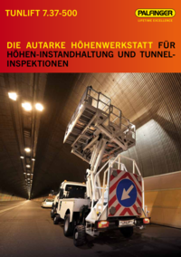 - Für die Anforderungen im Straßenbau passend ausgelegte Arbeitsbühne, z.B. für Einsätze in Tunnels, Unterführungen, an Brücken, Autobahnen, Straßen