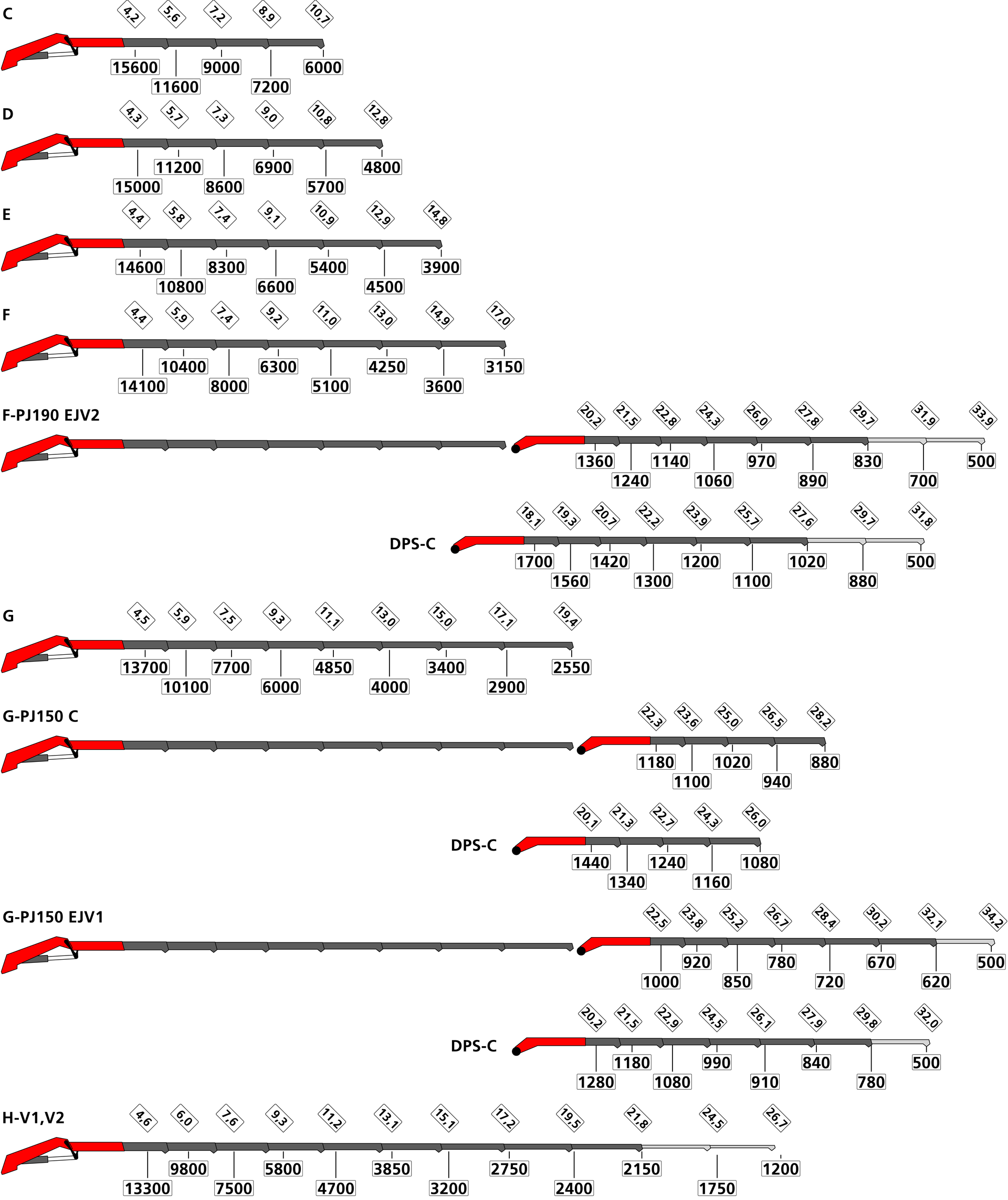 | 61.7 | 19.5 | ∞ | 7.3 mt | 38.5 | 100 - 130 l/min | 7530 | 2470 | 2550 | 1820 | |
