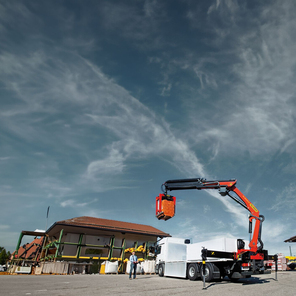 The hydraulic knuckle boom crane is PALFINGER's core product. Loading cranes help to load and unload trucks and other vehicles. Lorry cranes make an impression thanks to their operator friendliness and high level of cost efficiency.