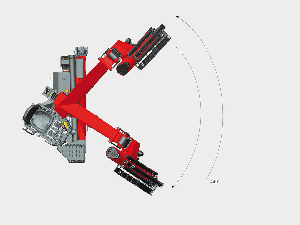 The slewing angle of 440 degrees enables the maximum radius of action.