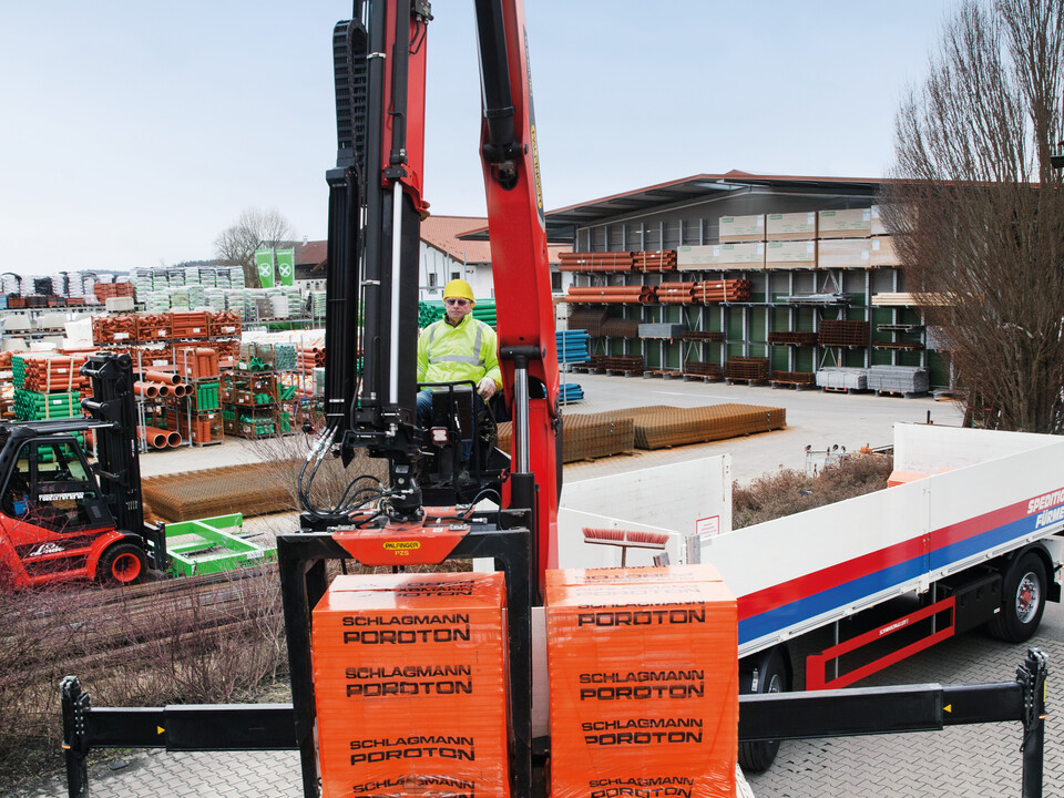 Thanks to the very good loading height in close range, the crane can move pallets over the entire loading area.