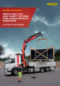 The knuckle joint on the crane's knuckle boom improves the crane's lifting power significantly in typical working positions. This knuckle boom, which has been specially developed by PALFINGER and can be angled upwards, also stands out by virtue of excellent movement geometry. Difficult crane jobs can be performed with precision even in the tightest spaces.
