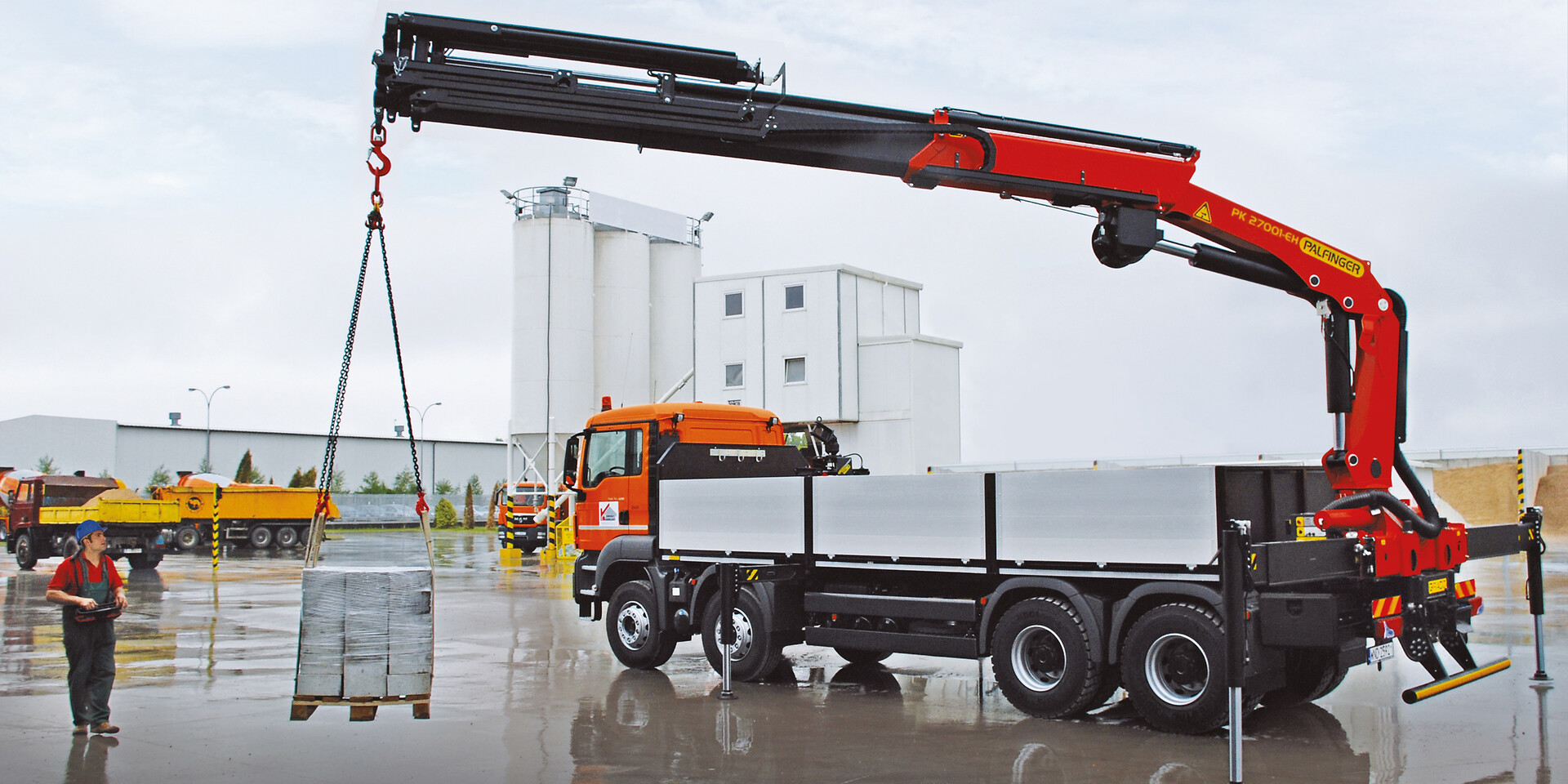 The patented PALFINGER "AOS" oscillation suppression system cancels out vibrations and blows that occur during crane operation. Any "post-oscillation" is prevented through rapid braking or load changes. The result is a decisive increase to safety in crane operation for employees, the load and building.