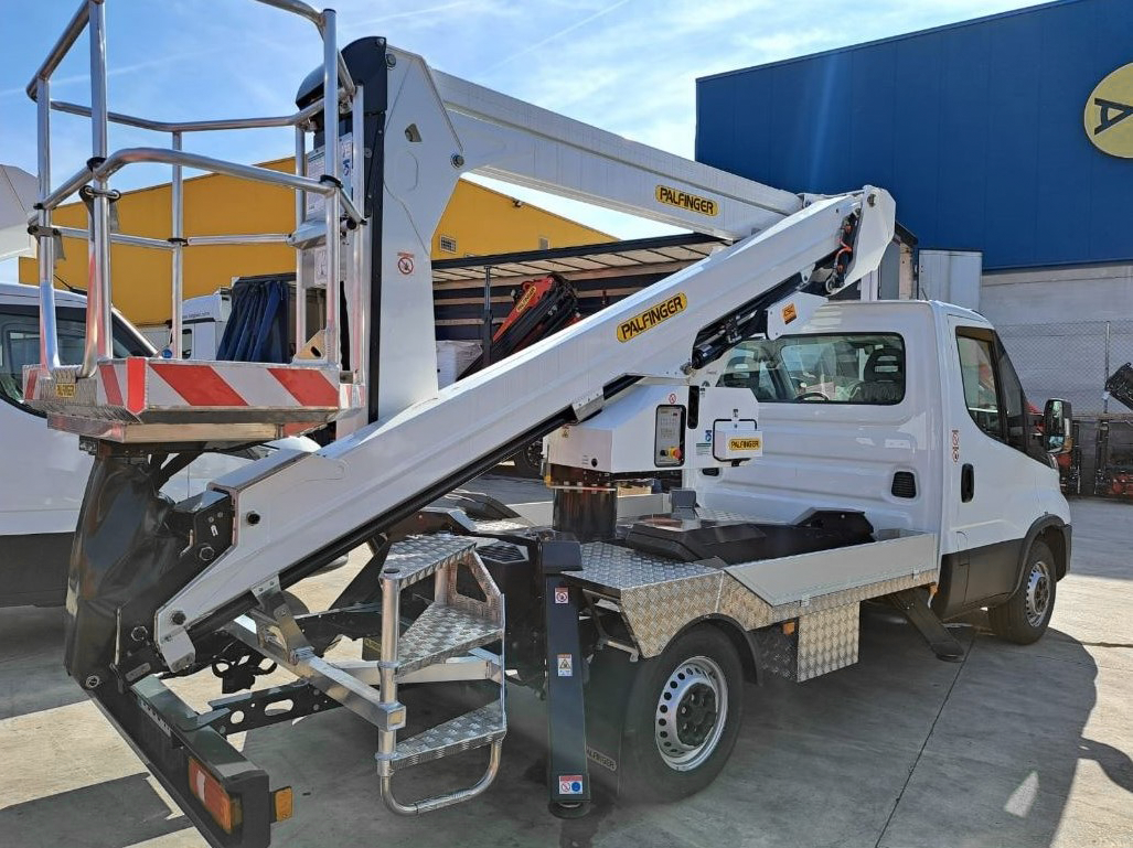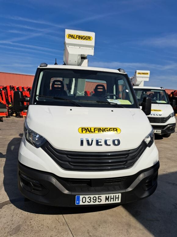 El camión cesta PALFINGER P 240 A-E, está montado sobre un IVECO que alcanza una altura de trabajo de hasta 22,9 m (20,9 m a la base de la cesta), alcance lateral 11,6 m, cesta de aluminio con dimensiones 1.400x840x1.100 mm, peso máximo en plataforma 250 kg, giro de cesta 2x90º, giro torreta 290º, nivelación de cesta hidráulica automática, arranque y parada del motor desde la cesta, toma de corriente en cesta de 230 VAC y de aire/agua, 12 VCC, normativa CE.
