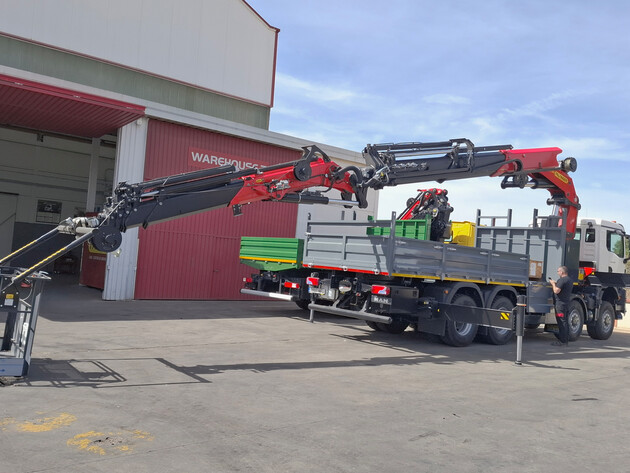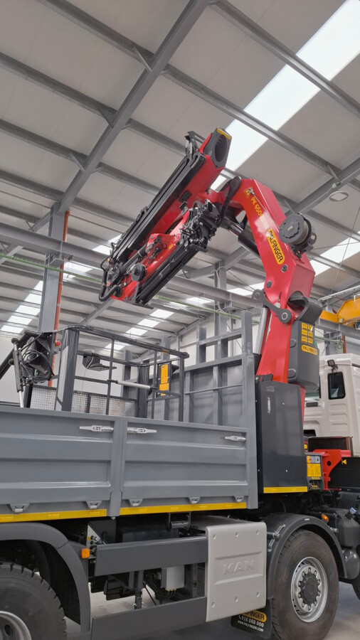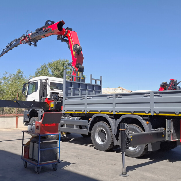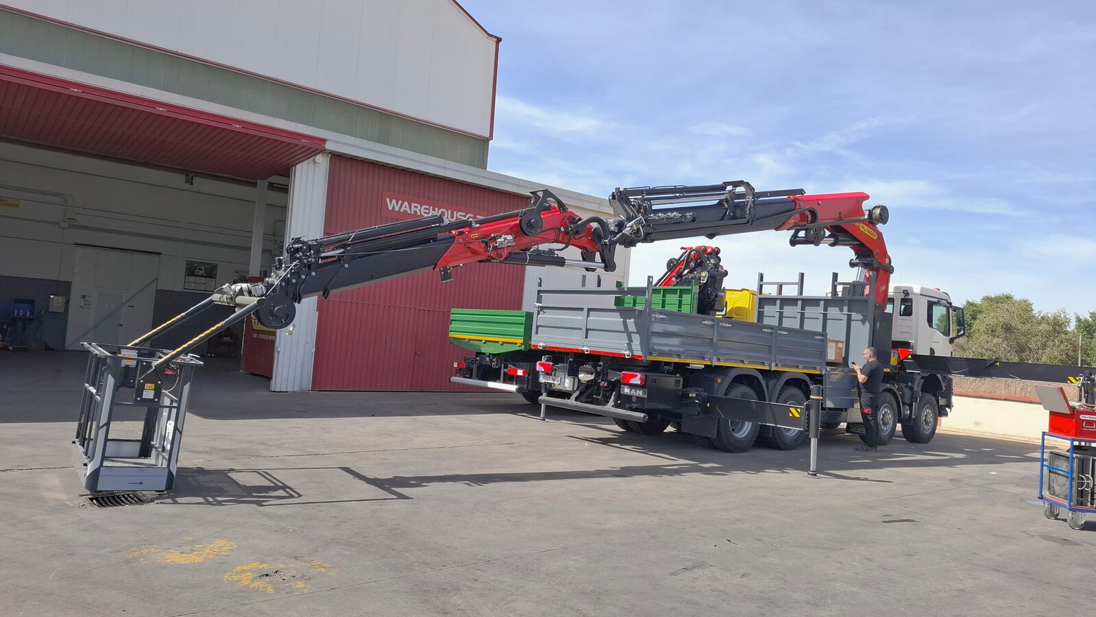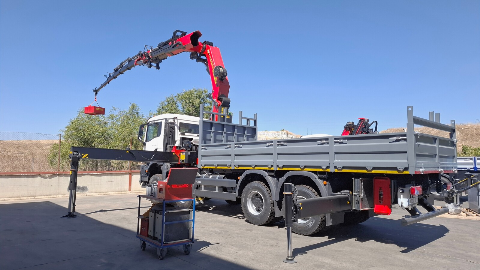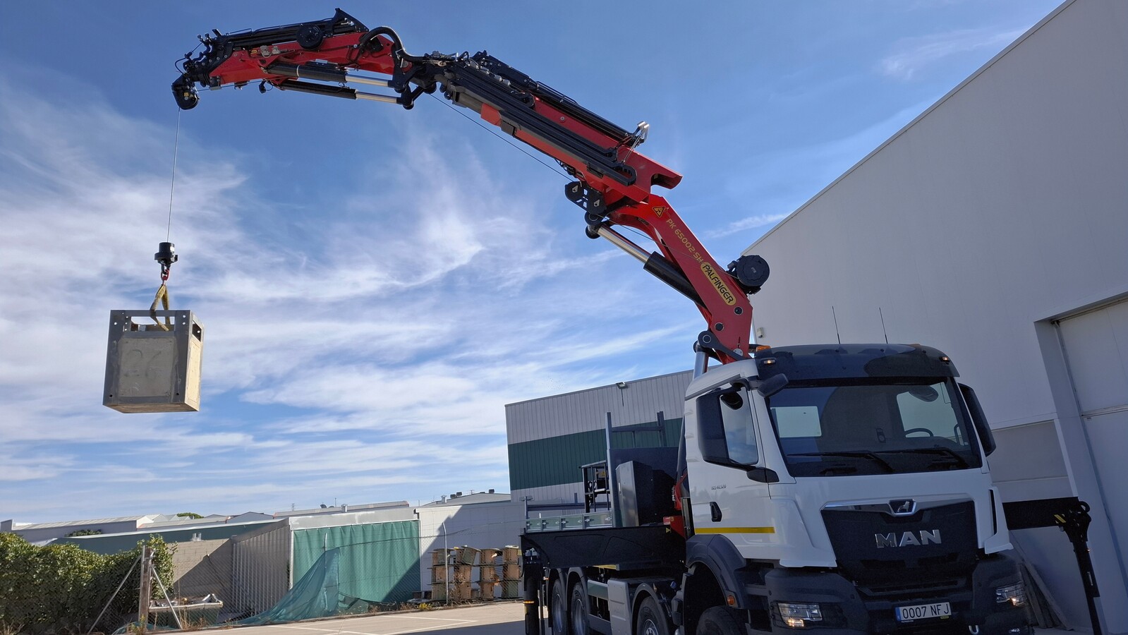 El montaje de la grúa se ha realizado en trabajo en equipo entre nuestro personal de técnicos especializado del Centro de Montaje PALFINGER en Madrid y la elaboración de la carrocería a cargo de nuestro Taller Oficial en Cuenca, Pal Workshop SL. Este impresionante equipo está montado sobre camión MAN TGS 41.520 8x6.