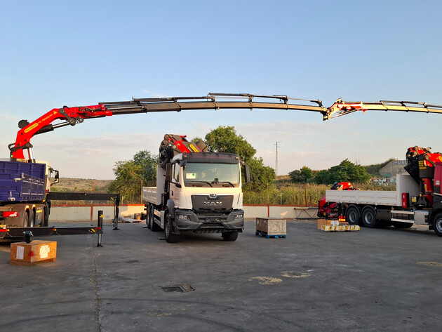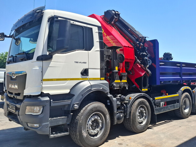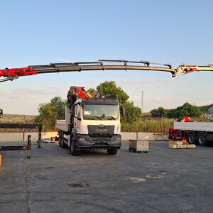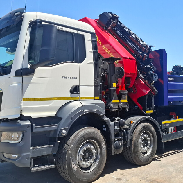 La grúa PALFINGER PK 78002 SH de alta gama, está montada sobre camión MAN TGS 41.480 8x4. Cuenta con 6 prolongas hidráulicas (E), Fly-jib PJ170E con 6 prolongas hidráulicas adicionales, lo que le permite un alcance horizontal de 25,6 m y hasta 1480kg de carga. Además, lleva incorporado un cabrestante hidráulico 2.5t MFA instalado en el brazo principal, un depósito adicional de aceite 350L y el mando Palcom P7.