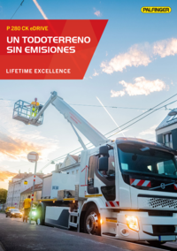 Sin ruido ni contaminación. Al trabajar en áreas urbanas, sobre todo por la noche, el ruido de una plataforma aérea puede resultar un problema para muchos vecinos. En algunas zonas, como en las inmediaciones de hospitales, a veces está incluso prohibido trabajar por la noche con plataformas convencionales. Sin embargo, con el modelo P 280 CK eDRIVE, el ruido y la contaminación se reducen al mínimo, puesto que su chasis es totalmente eléctrico y el ruido generado por la plataforma es muy escaso.