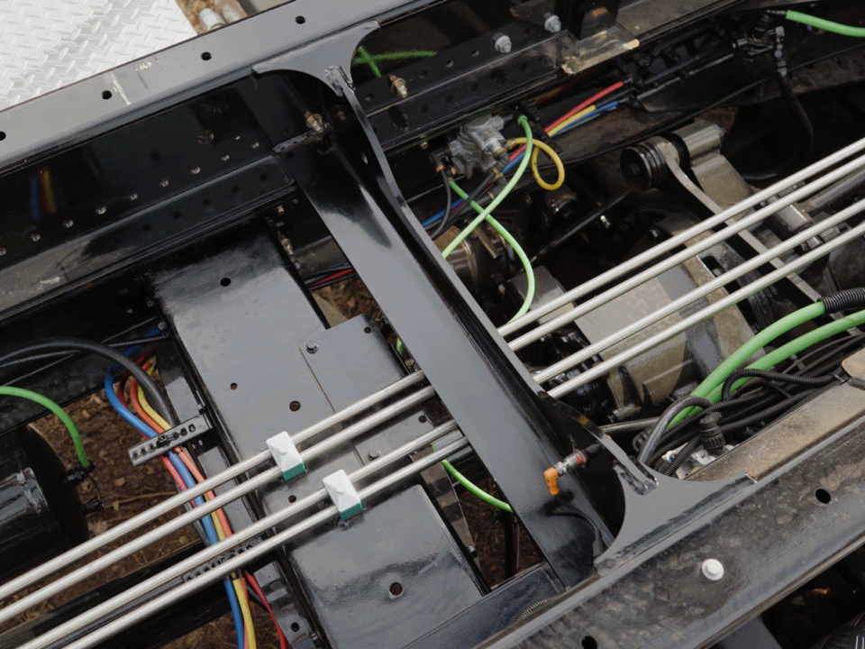 • La viga transversal delantera reduce el riesgo de interferencia con el motor o la caja de cambios del camión.