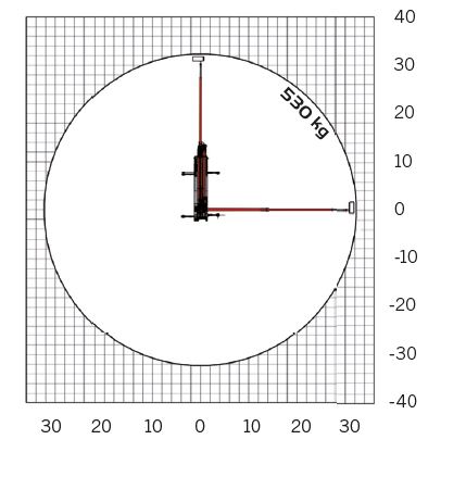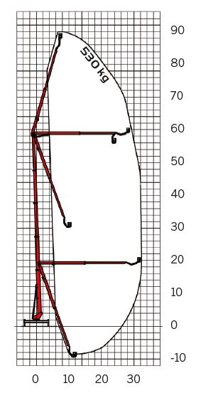 Hydraulic jib boom, working range