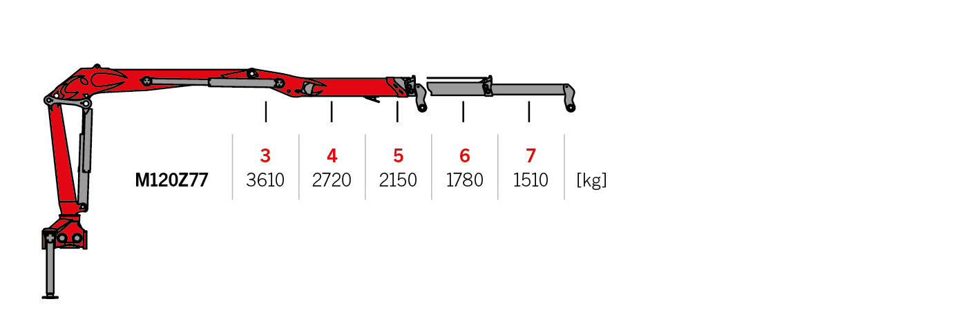 This Z-type construction crane from our Epsolution range has a lifting capacity of 12 metric tons and is available in four arm lengths: 7.7 m, 7.9 m, 8.2 m, and 9.6 m. The M120Z features Epscope and Epslink, can be equipped with Easyfold, and offers six different control methods.