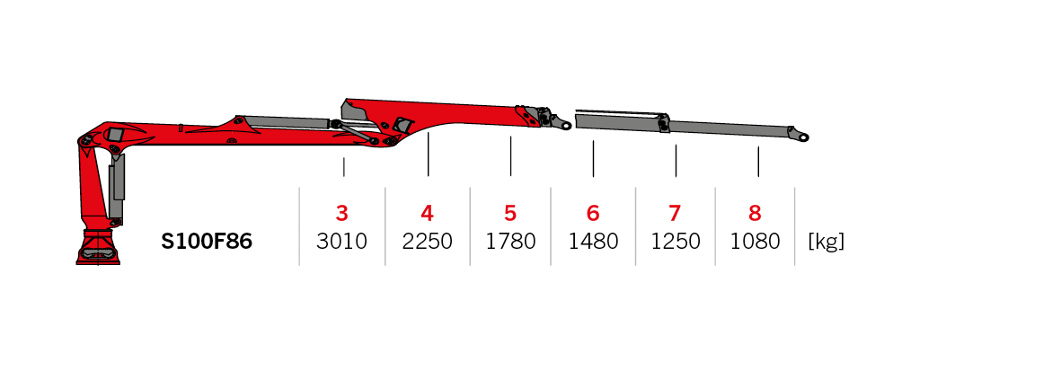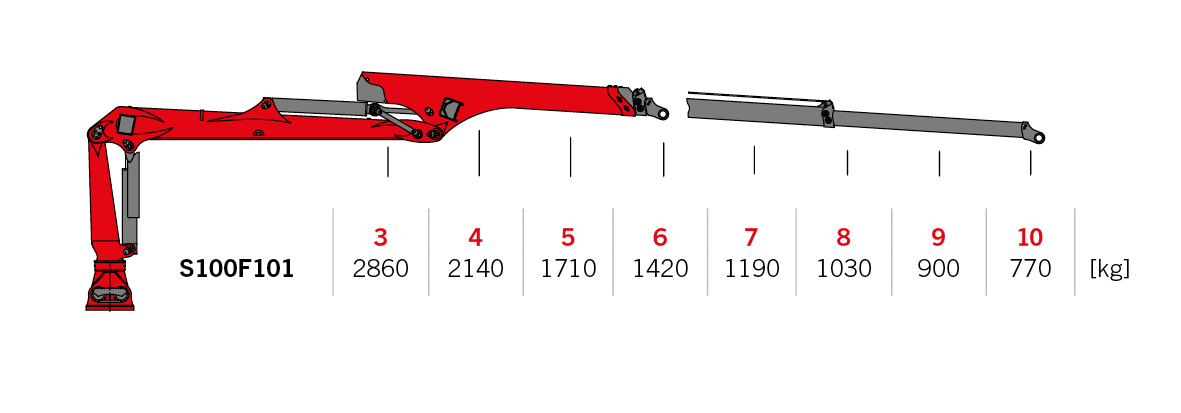 This offroad forwarder crane from our Epsolution range has a lifting capacity of 10 metric tons and is available in four arm lengths: 8.0 m, 8.6 m, 10.1 m, and 10.3 m. The S100F features Epscope, Epslink, and Epslight technologies and a double slewing system.