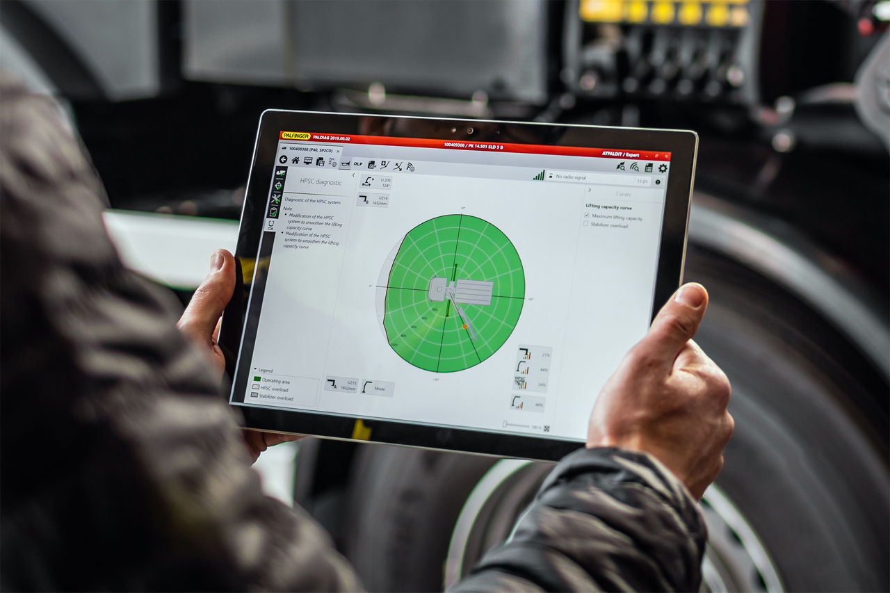 PALDIAGを使用してお客様の業務を最高の状態にできるよう、トレーニングを受けた当社認証済みのサービスパートナーが、次のような設定を行います。安定性の構成(例:ISC、HPSC-Plus LOAD)、アシスト(例:P-Fold)や使いやすいシステム(例:AOS、SRC、RTC、ソフトストップなど)、負荷制限や制限エリアの定義、レバーや機能の割当て、速度設定、センサやテレマティクスモジュールの校正、機能の改良変更など。