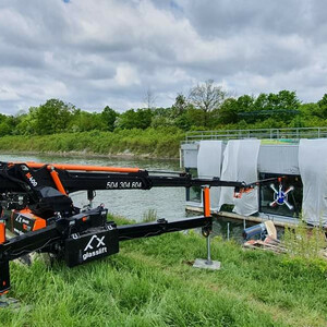 Duas gruas numa só: A inovadora tecnologia dos estabilizadores de dupla viga transversal permite maiores possibilidades de posicionamento, facilitando a sua utilização em situações há muito tempo consideradas impossíveis.