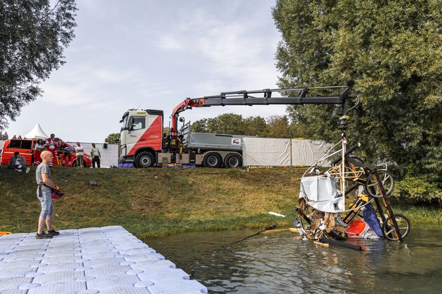 What was pilot Lukas thinking during take-off? "I hoped that I would be able to land the shark in as much of a controlled manner as possible." No sooner said than done: The shark landed upside down but safely on the water. And the ratings were impressive as well: In the end, the PALFINGER team, Fish and Jibs, won 14th place. By the way, the crew members are more than satisfied with their performance.