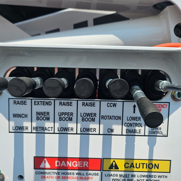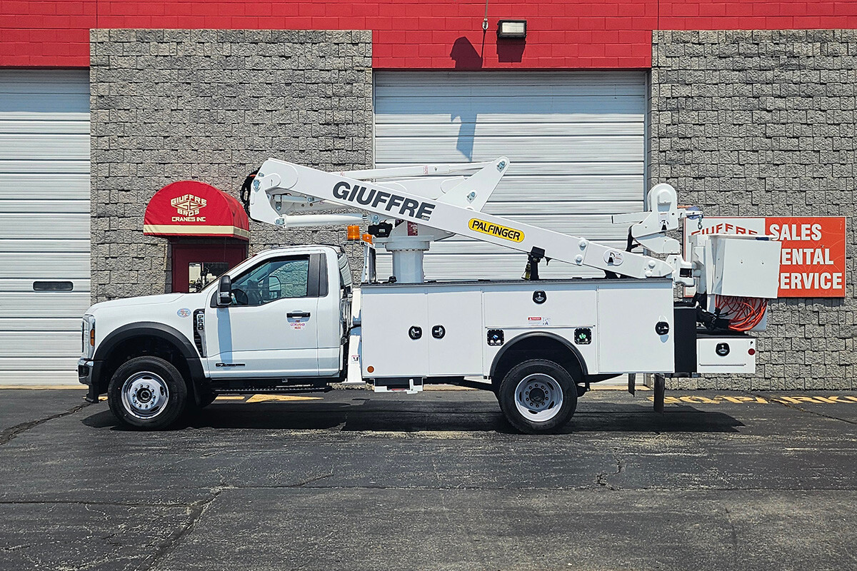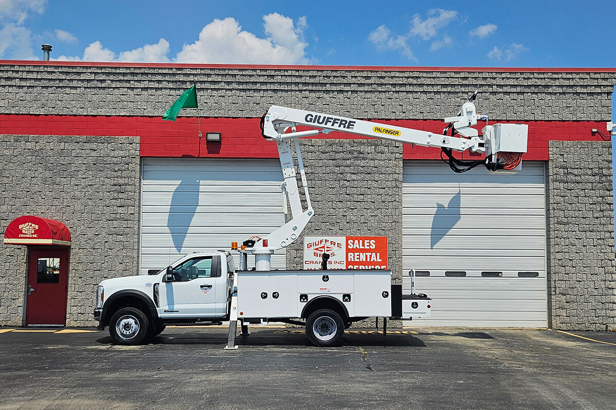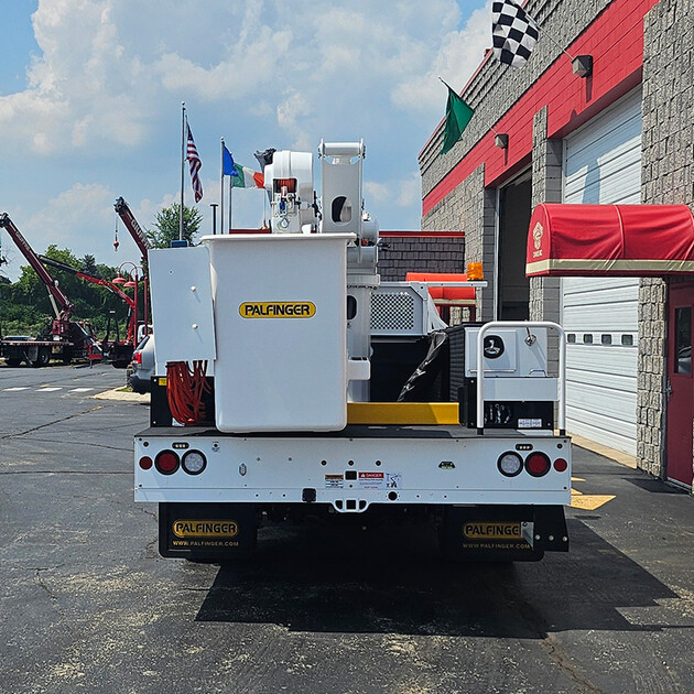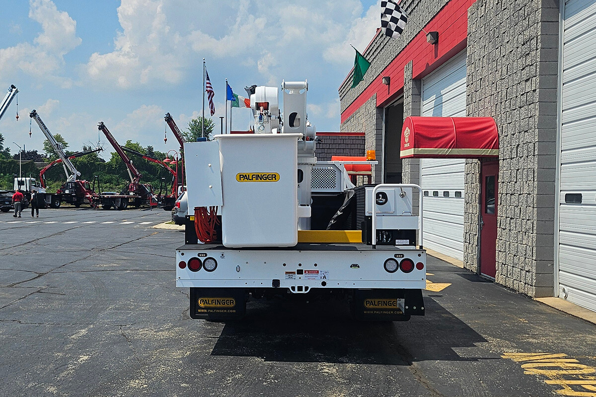 With a 40’ working height, 30’ side reach, a 24” x 30” bucket, and continuous rotation, the ETC MH 40 IH delivers the maneuverability and reach you expect from a PALIFINGER bucket truck. Single-handle control, basket and turret full-pressure hydraulic controls with complete feathering capabilities, an extended shear ball rotation shaft, replaceable pin bushings, an emergency lowering valve, and engine start/stop at the bucket are powerful standard features.