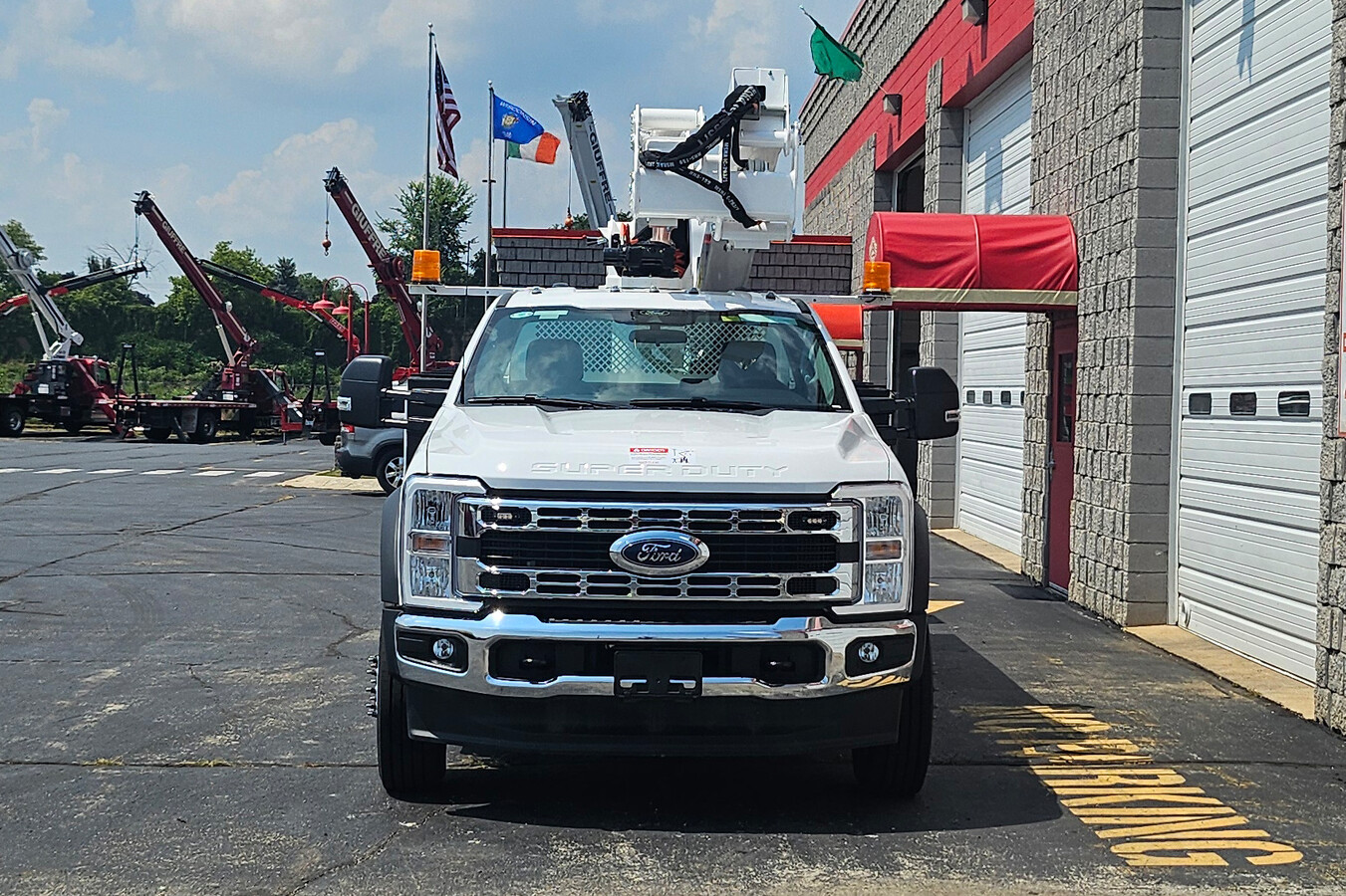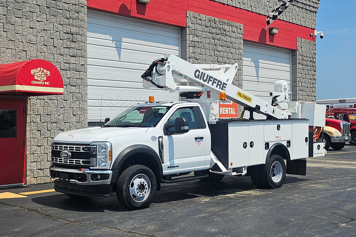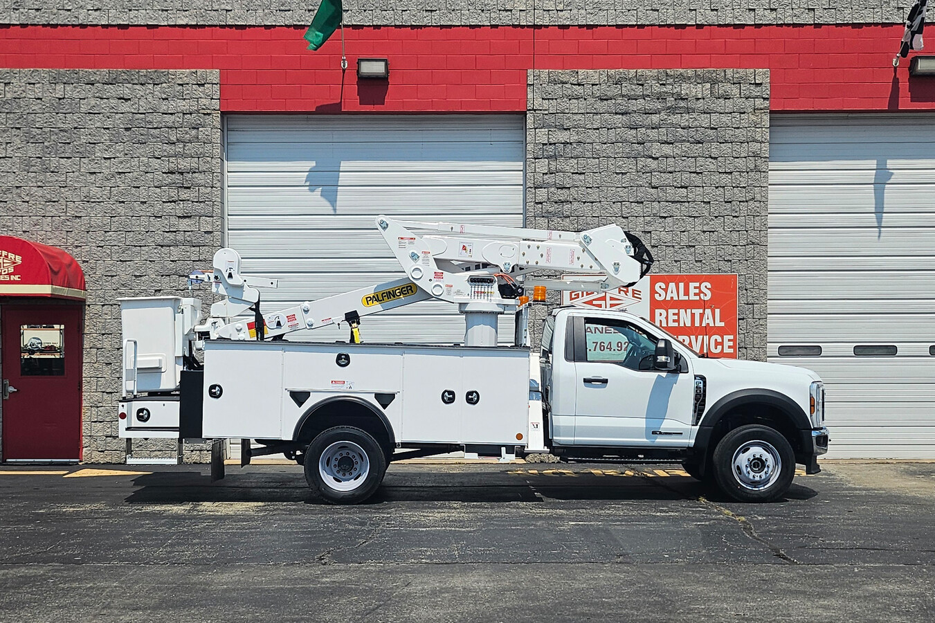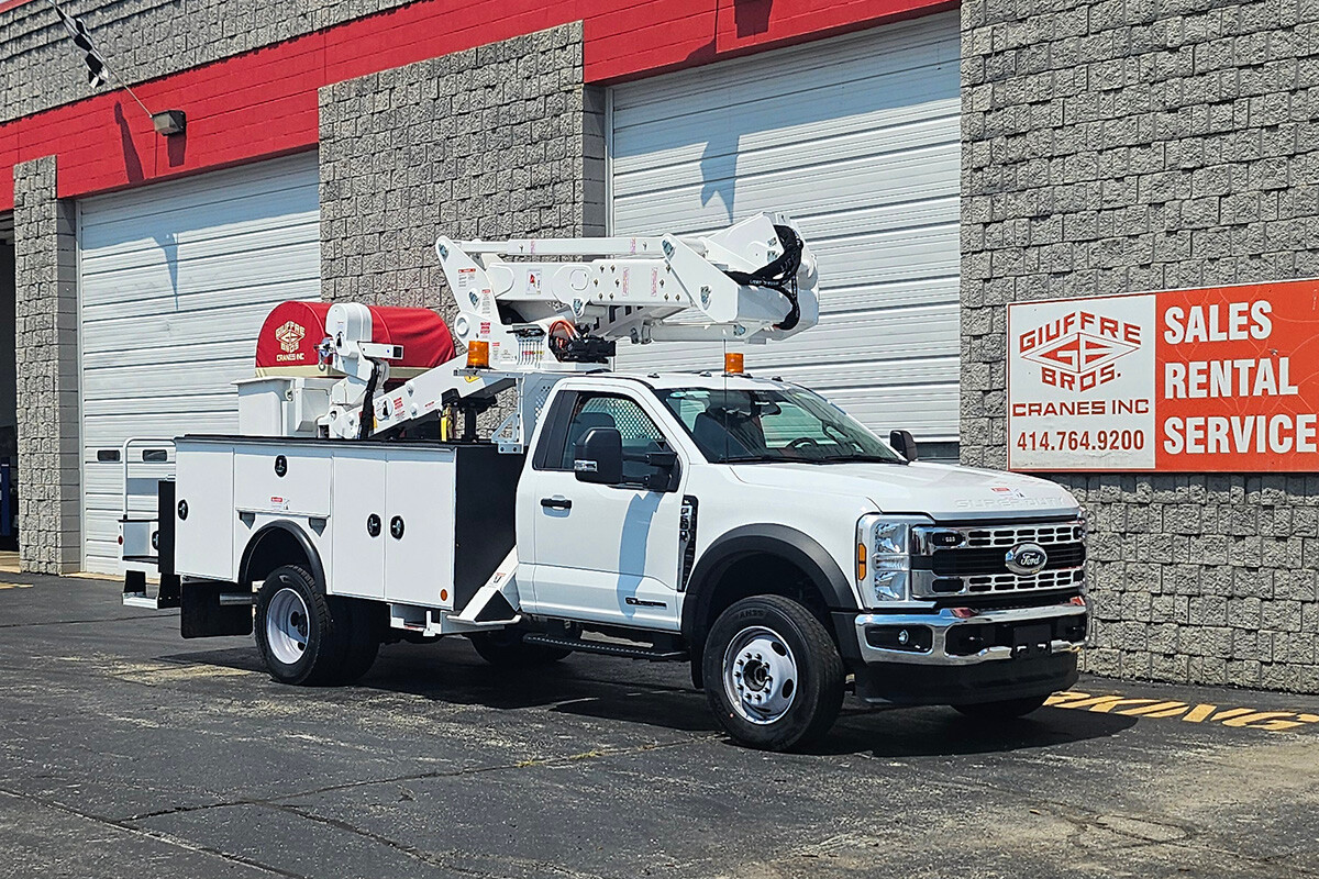 With a 40’ working height, 30’ side reach, a 24” x 30” bucket, and continuous rotation, the ETC MH 40 IH delivers the maneuverability and reach you expect from a PALIFINGER bucket truck. Single-handle control, basket and turret full-pressure hydraulic controls with complete feathering capabilities, an extended shear ball rotation shaft, replaceable pin bushings, an emergency lowering valve, and engine start/stop at the bucket are powerful standard features.