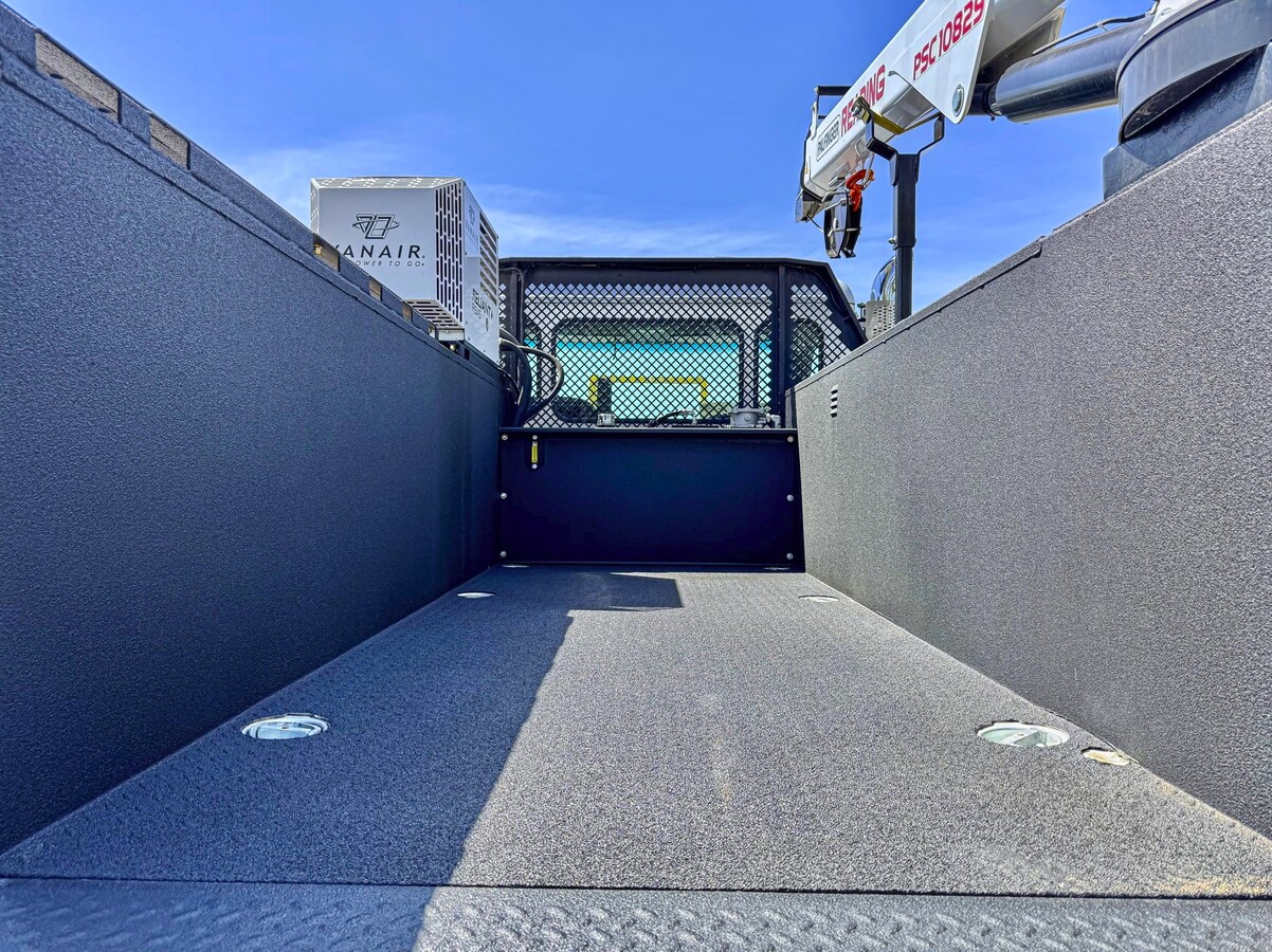 - Line-X Applied Exterior To The Crago Area, Sides, and Tops Of Side Compartments and Interior Compartments