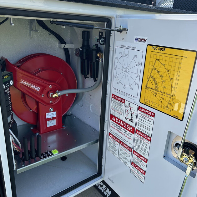 • 50′ x 1/2″ hose reel and FRL in crane compartment