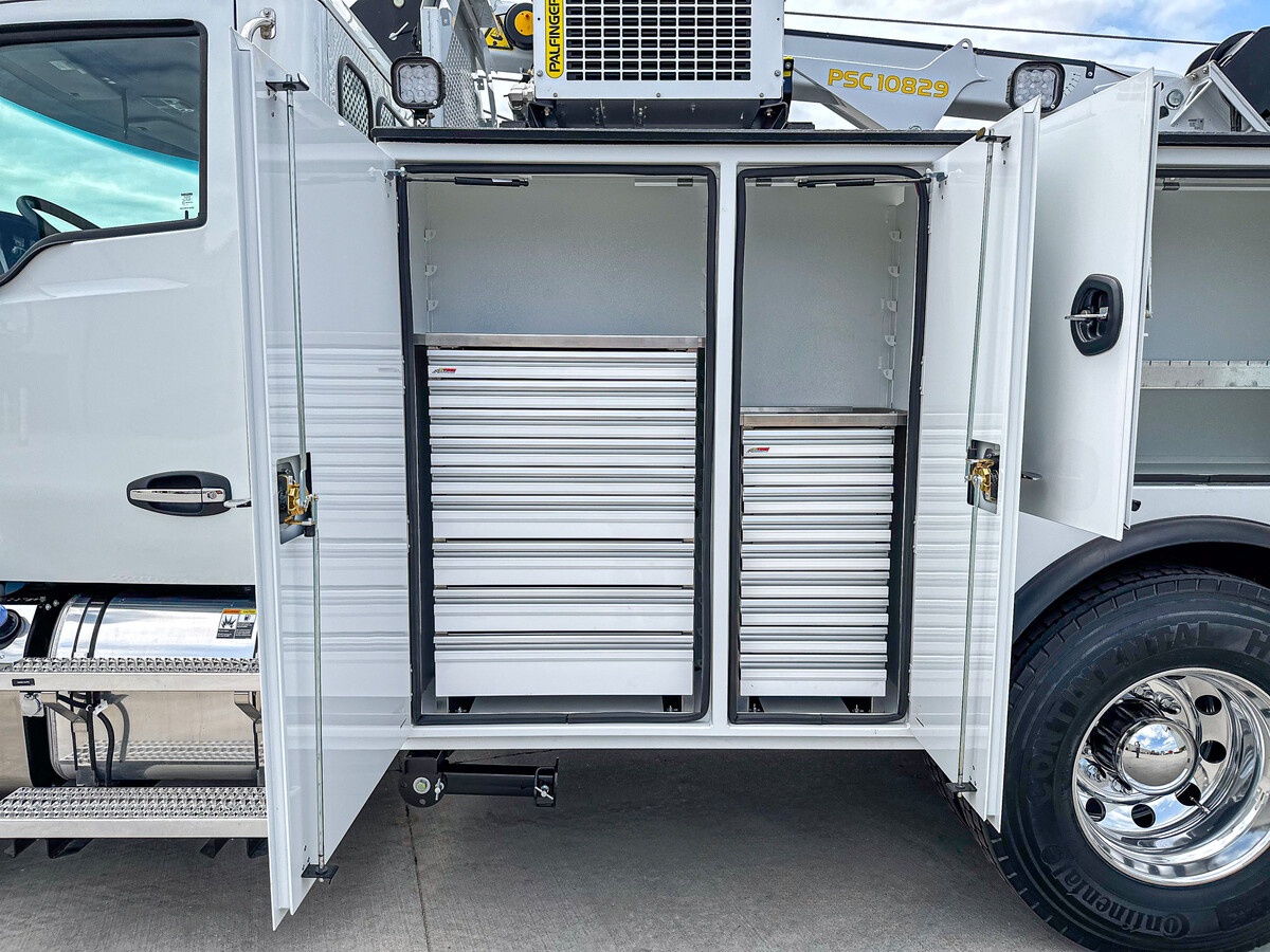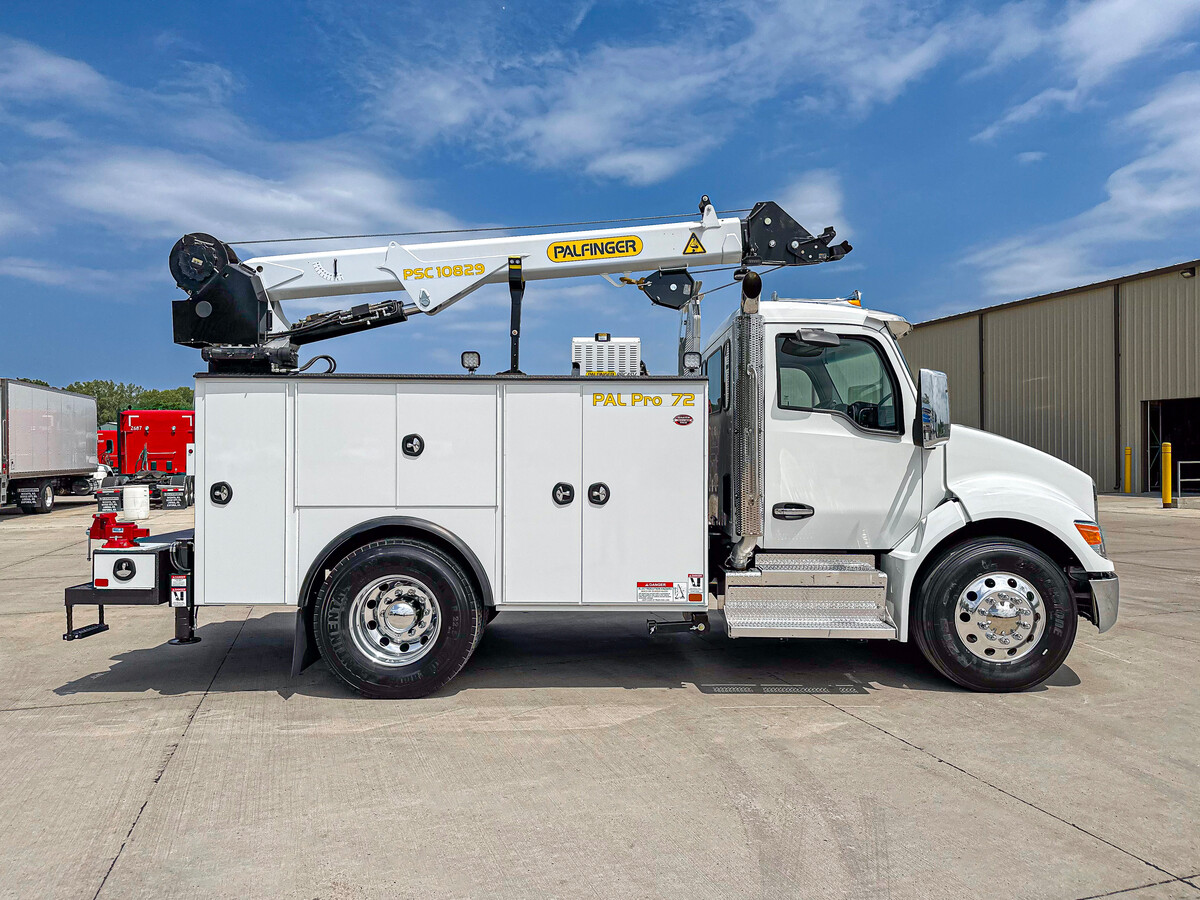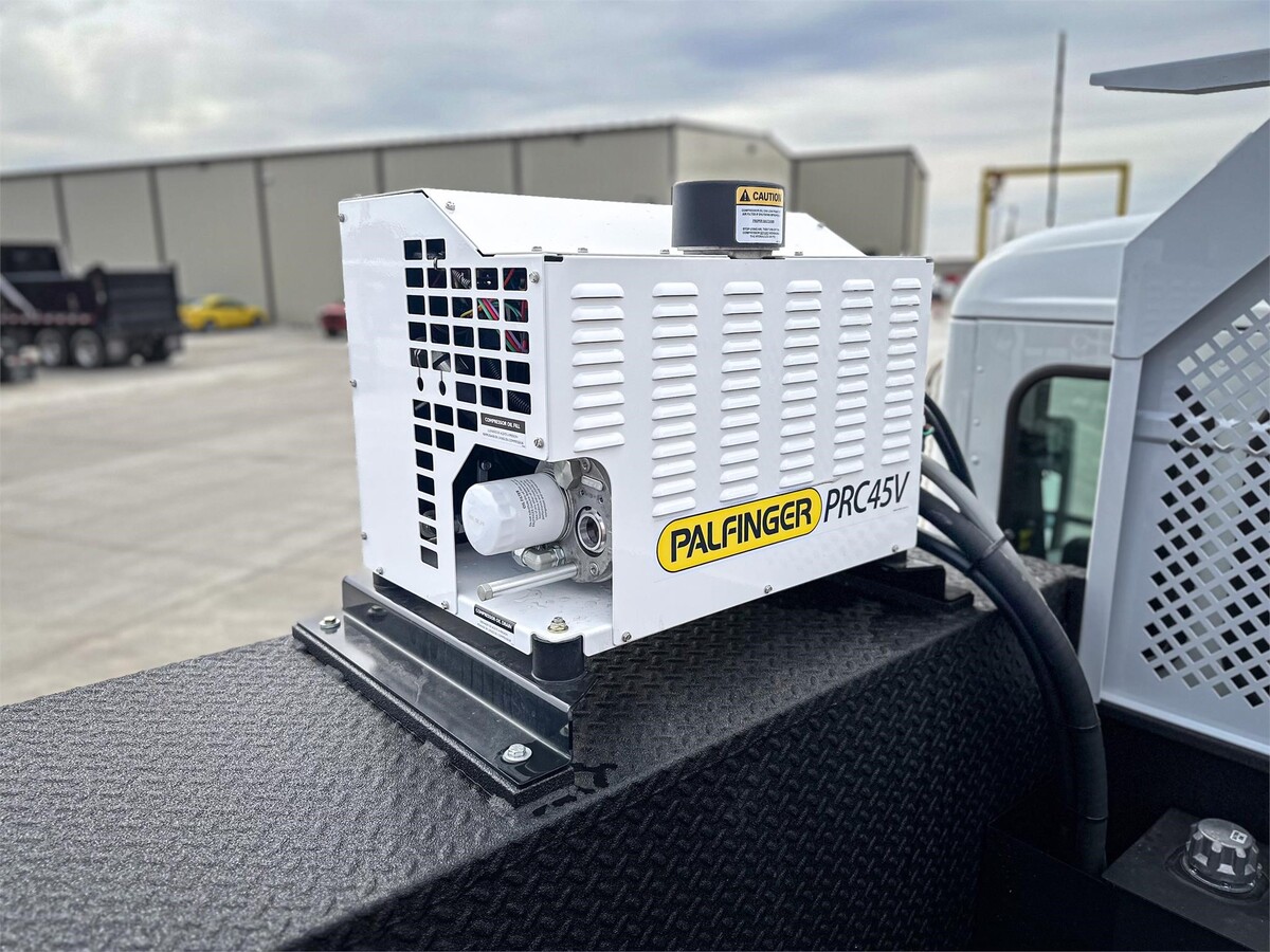 The PALFINGER PRC 45V hydraulic-driven rotary screw compressor provides up to 45 CFM at 150 PSI, offering reliable air power for heavy-duty tasks in a compact design.