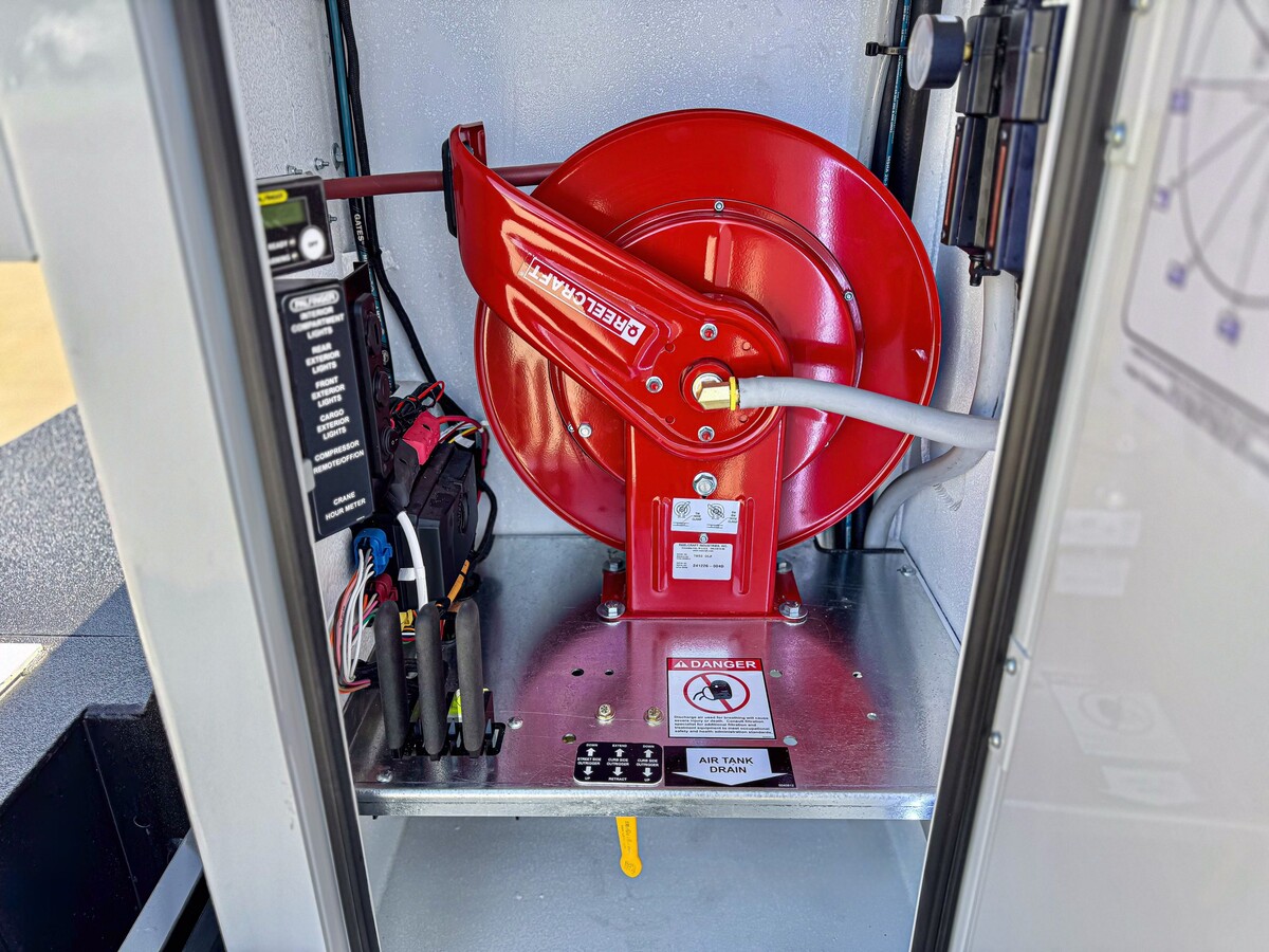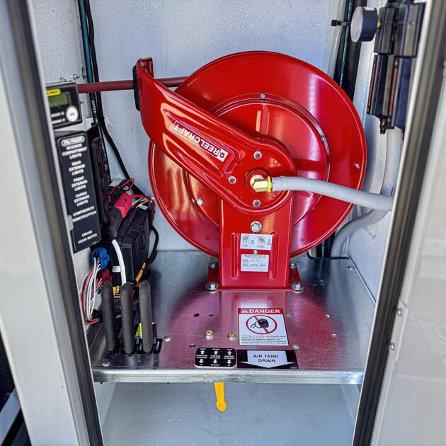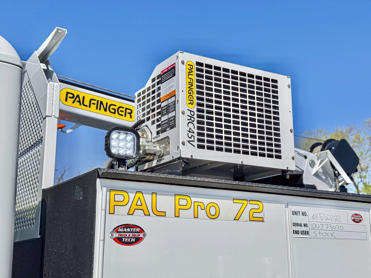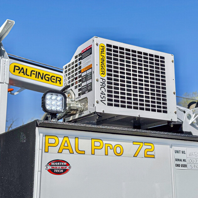 The PALFINGER PRC45V Hydraulic-Driven Rotary Screw Compressor provides up to 45 CFM at 150 PSI, offering reliable air power for heavy-duty tasks in a compact design.