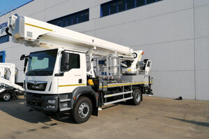 - Piattaforma aerea telescopica con elevate prestazioni, installata su autocarro 3,5 t.