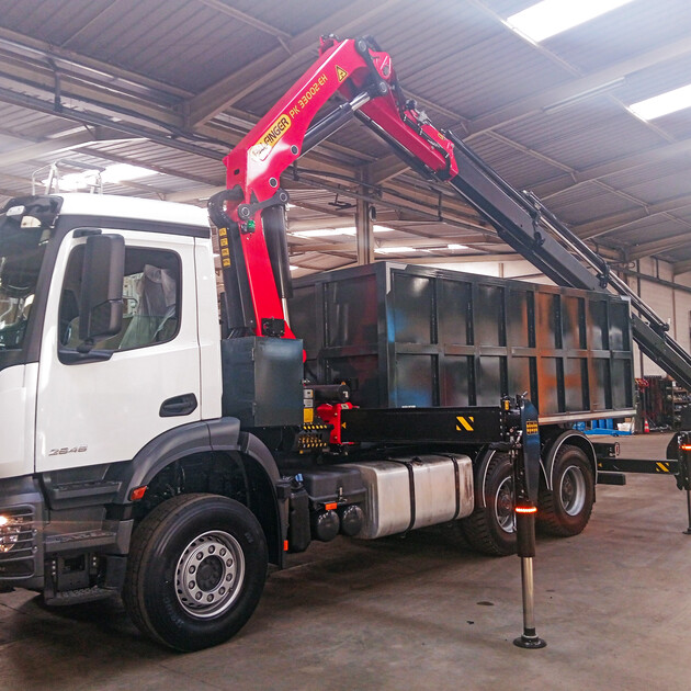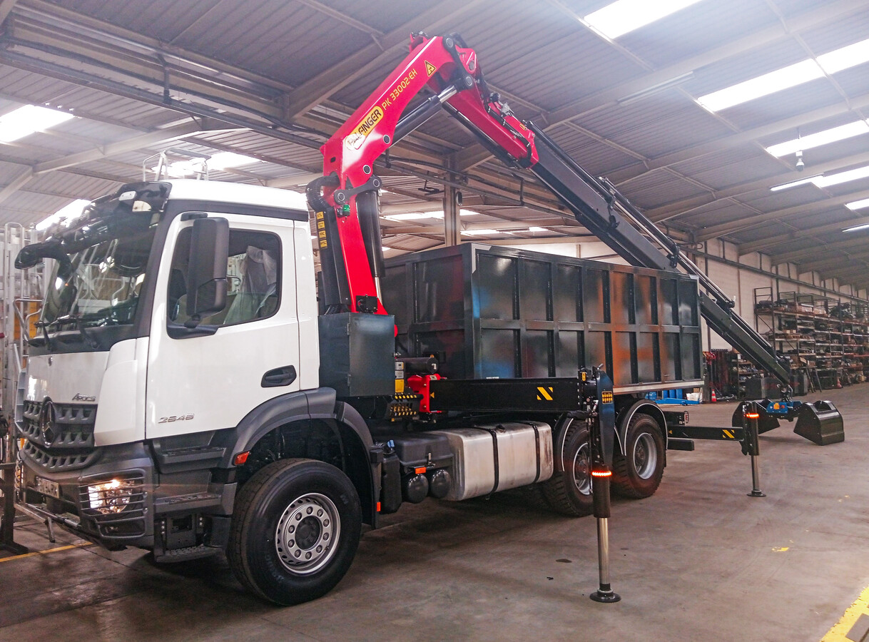 Entre as funcionalidades de destaque, o sistema AOS minimiza a oscilação dos braços durante a operação, garantindo maior estabilidade e conforto ao operador. A função FFST4 permite a abertura remota das sapatas através do comando rádio, agilizando o processo e eliminando a necessidade de intervenção direta junto ao veículo. O sistema MOT optimiza o consumo de combustível ao ajustar automaticamente as rotações do camião conforme o estado da operação, contribuindo para a eficiência energética e prolongando a vida útil do motor.