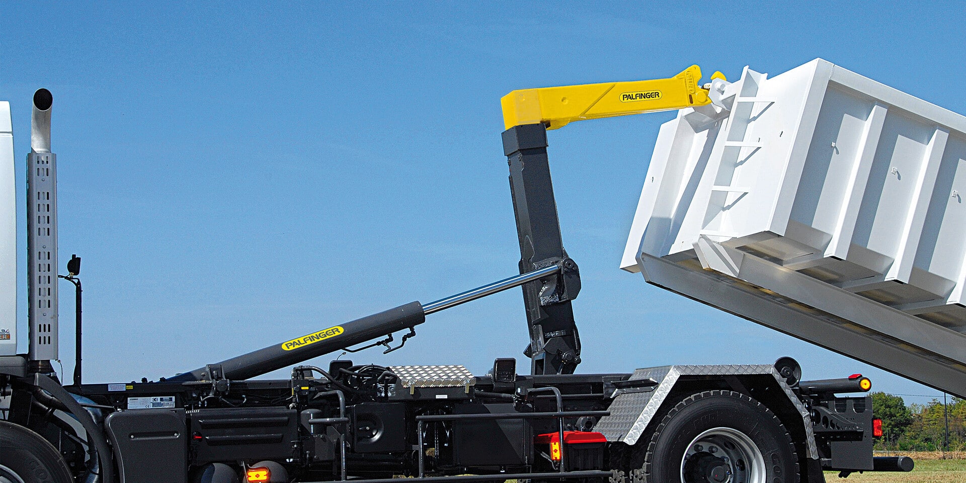 PALFINGER T15(A) är utrustad med vikbar krokarm. Med detta tillägg kan pådragningsvinkeln sänkas ytterligare för att slippa instabilitet vid pålastning, eller att lasten förskjuter sig. Dessutom kan du använda korta rullflak.