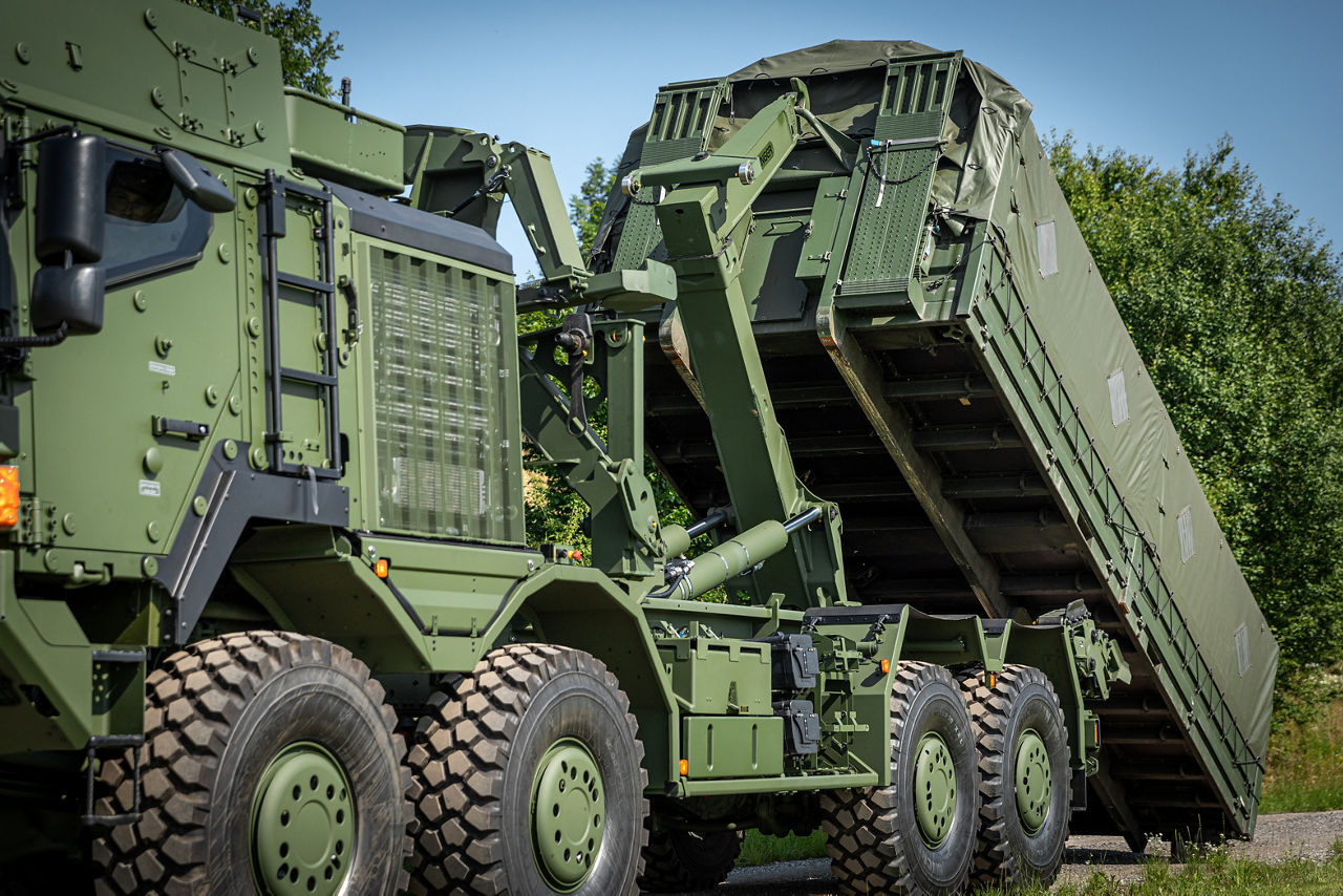PALFINGER delivers proven civilian lifting technology adapted for defense, humanitarian, and governmental missions – ensuring performance, precision, and reliability in the toughest conditions.