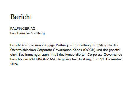 The evaluation result confirms that corporate governance is genuinely put into practice at PALFINGER. The audited questionnaire is available below for download purposes.