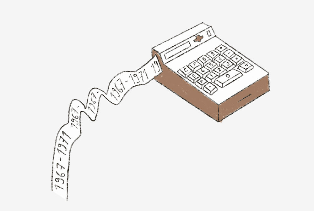 Introduction of the first Intel 4004 microprocessor. As early as 1967, the first pocket calculator marks the beginning of the era of miniaturization.