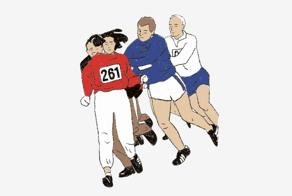 Kathrine Switzer becomes the first woman to take part in a marathon. The race manager tries to shove her off the course.